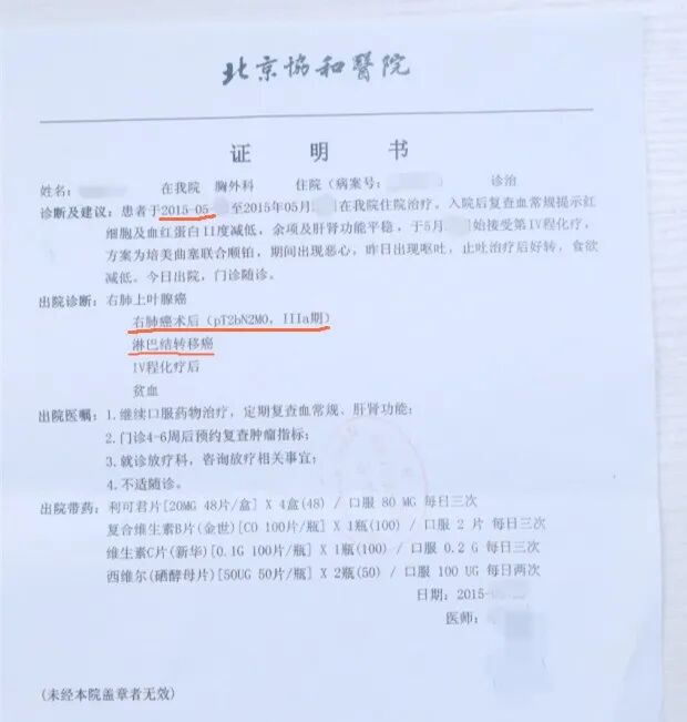 在北京协和医院进一步详细检查后,被告知“肺部、胰腺、后胸部,以及腰部四处情况不乐观,需进一步检查,明确诊断”。后来又转诊到肿瘤胸外科,查出来肺癌中晚期,有11处淋巴转移。好消息是有手术条件。